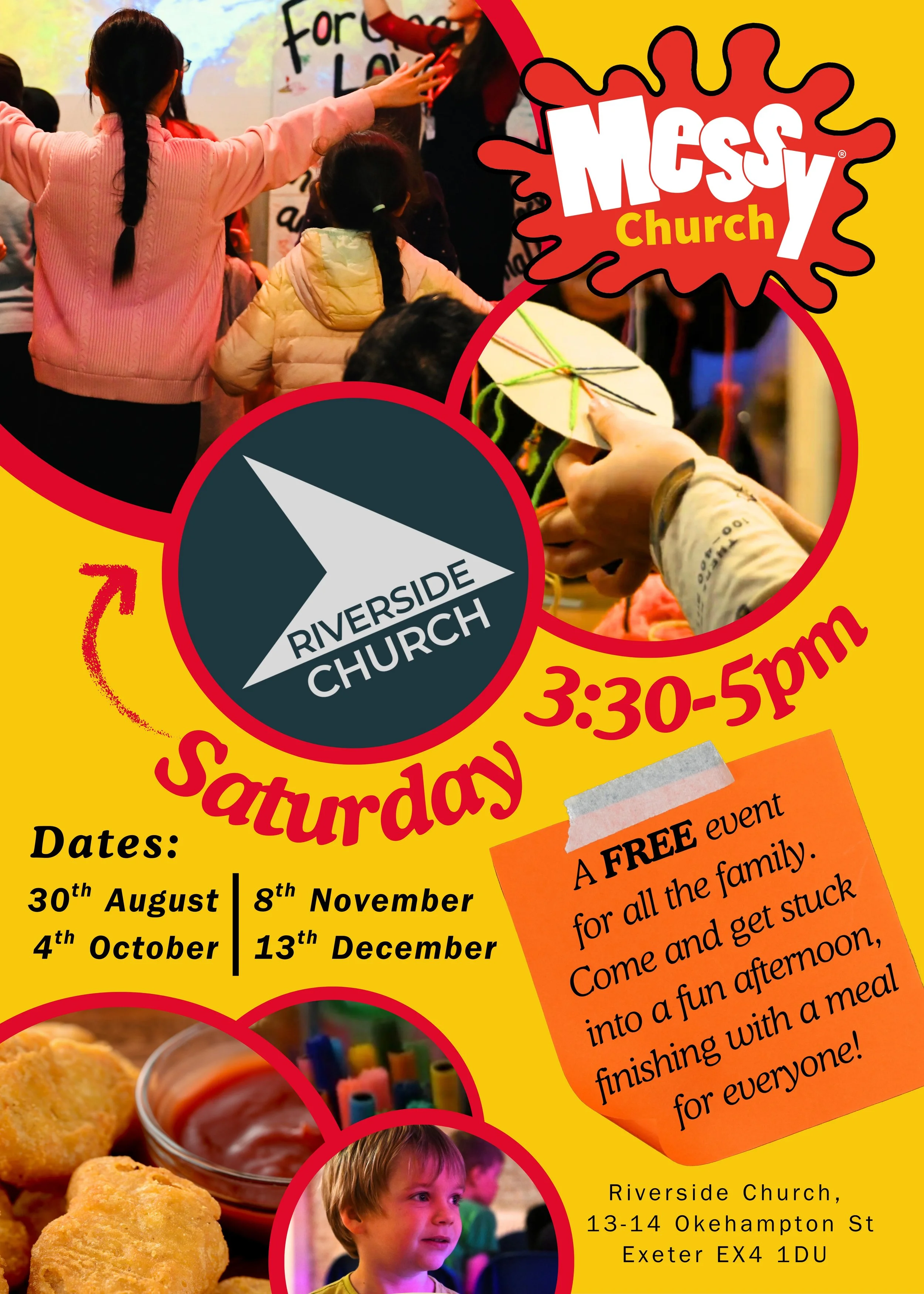 The Messy Church team would love to welcome you to our next time together. If you have any questions, don’t hesitate to contact Anna our Children & Families Pastor via email: annan@riversideexeter.com